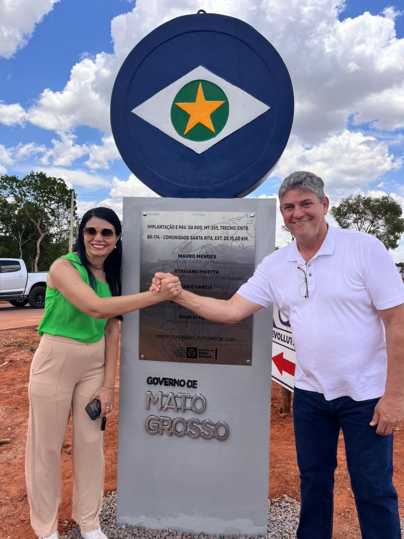 O município de Porto Esperidião recebeu a delegação do Governo do Estado de Mato Grosso no sábado, 25 de outubro de 2025. O objetivo da visita era a entrega e vistoria de obras rodoviárias na região Oeste mato-grossense. A delegação governamental foi liderada pelo Governador Mauro Mendes, que estava acompanhado pelo Secretário de Infraestrutura de Mato Grosso, Marcelo Padeiro, e pelo Secretário-Chefe da Casa Civil de Mato Grosso, Fábio Garcia. O ponto alto dessa agenda foi a inauguração da pavimentação da Rodovia MT-265. O trecho, que se estende por 15 quilômetros e liga o Entroncamento da BR-174 à Comunidade Santa Rita, foi entregue à população, o que representa uma melhoria substancial para os moradores e produtores rurais locais.