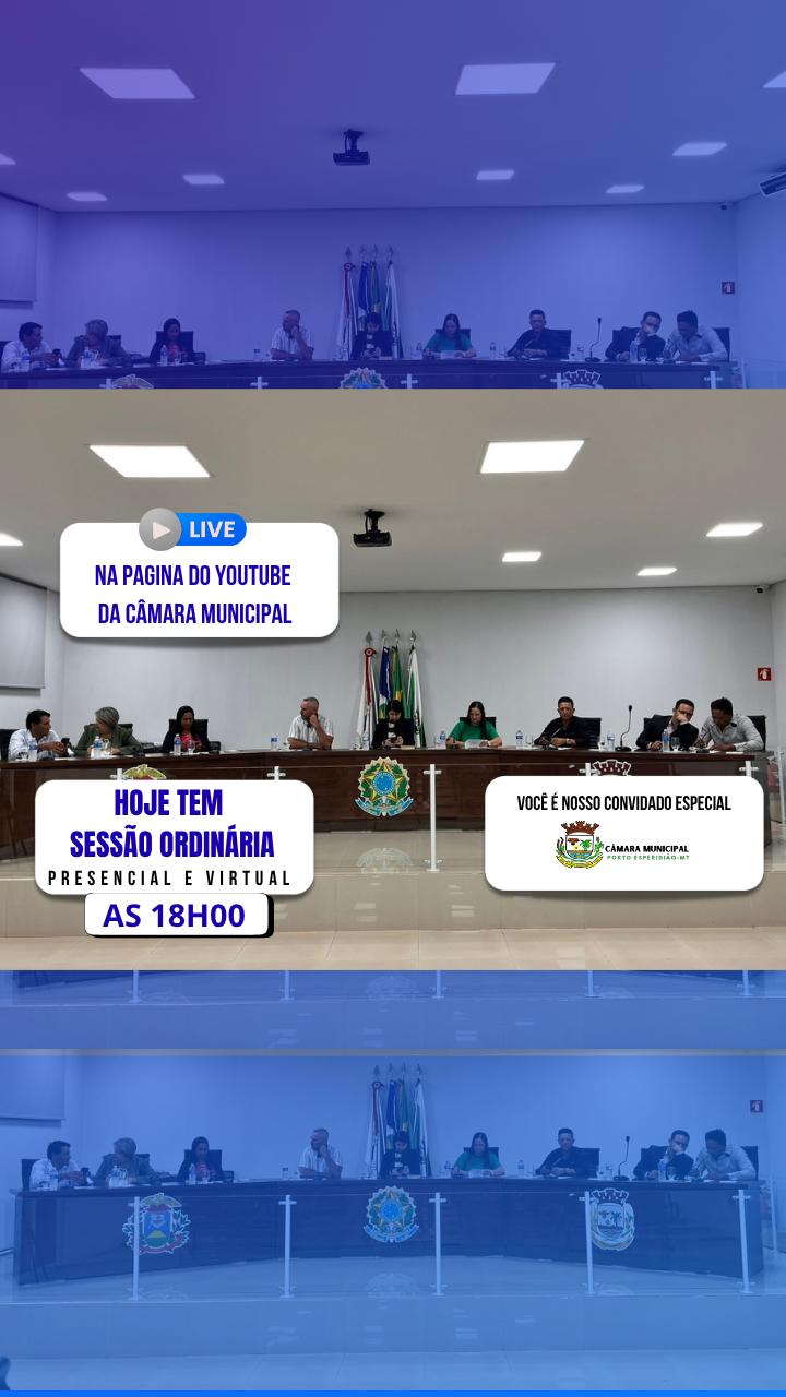 A Câmara Municipal de Porto Esperidião-MT, representada por sua Presidente, Vereadora Isamara Ramos, e pelos demais parlamentares, tem a honra de convidar todos os cidadãos portuenses a comparecerem à Sessão Ordinária. A sessão será realizada nesta segunda-feira, 20 de outubro de 2025, às 18h00, no Plenário desta Casa de Leis.